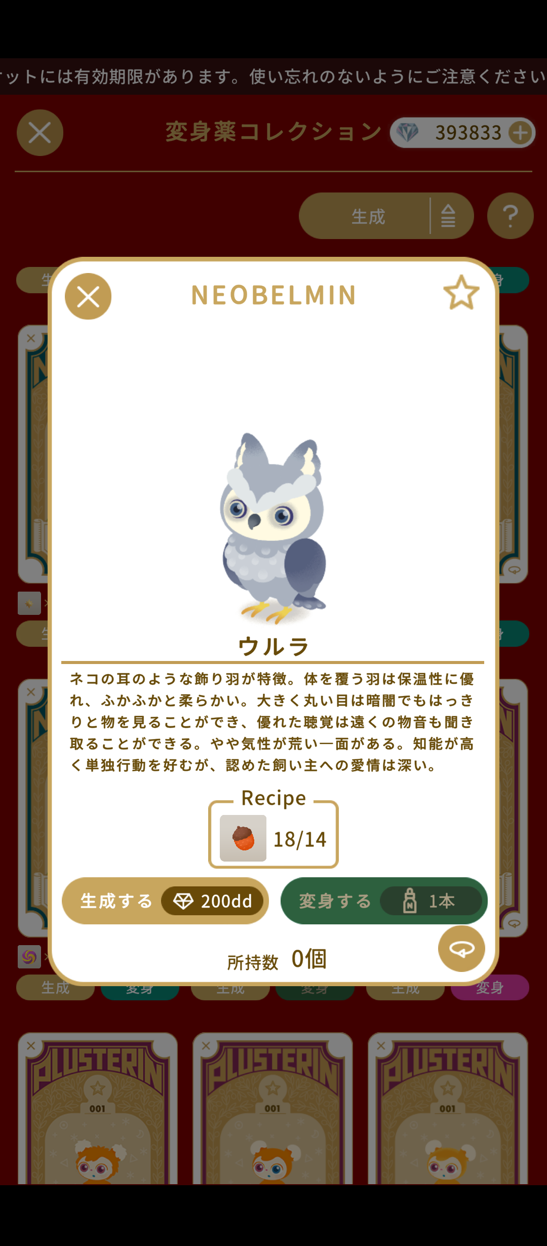 今月の新リヴリーはウルラというフクロウのようなリヴリーでした。
