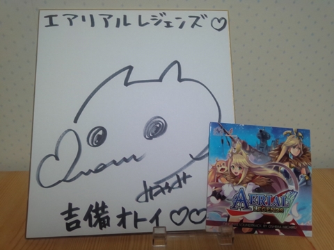 現在、スマホアプリの『エアリアルレジェンズ』という長崎のハウステンボスと共同開発しているタワーディフェンスならぬタワーオフェンスゲームをプレイしています。 公式ツイッターでは登場キャラクターの声を担当している声優さんの直筆サイン色紙が当たるキャンペーンをしばしば行っているのですが、初めて当選しました。 ゲーム内では吉備オトイというキャラクターの声を担当している田中美海さんです。 色紙の当選も嬉しいのですが、実はオマケとして付いている非売品のサントラCDがこれまた嬉しかったり。。。 決してメジャーなアプリとは言えないものの、システムも面白く、運営の方々の頑張りも伝わってきているので、もっと流行ってほしいものです。 | ||