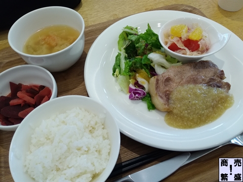 今日のメニューは「茶美豚のオーブン焼き アップルジンジャーソース」