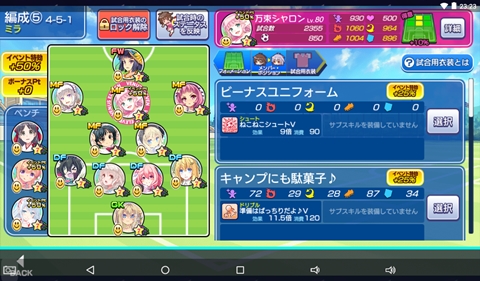 ≪2019年7月14日≫ 美少女育成サッカーゲームアプリ『ビーナスイレブンびびっど!』で7月14日から始まるイベント「マリンナースのお仕事」の招集メンバーを発表します。 GK 舞姫ゆらら DF ハッカ2号 嫋八女ふみ エヴァ ロトン ※ボーナス MF ビャクシニ 鳴海りな 狩屋うるむ ※ボーナス 万束シャロン ※特効 ヴァレリー FW 速水つばさ 控え アルセーネ ※特効 中森こむぎ ※特効 飯綱みれい 推しの1人でもある万束シャロン選手の特効衣装狙いで20連したところ特攻選手が3選手も獲得できました。 ミラ杯は特効選手が1人いれば十分に目標は達成できるので、これは逆に嬉しい悲鳴です。 | ||