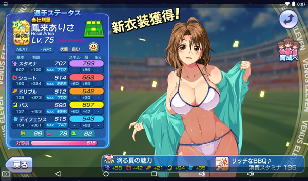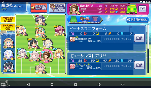 ≪2019年8月23日≫ 美少女育成サッカーゲームアプリ『ビーナスイレブンびびっど!』で8月24日から始まるイベント「Let’s cheer!」の招集メンバーです。 GK 舞姫ゆらら(8696試合0点) DF 鳳来ありさ(406試合69点) ※特効 嫋八女ふみ(16172試合375点) エヴァ(19843試合497点) ヴァレリー(19350試合673点) MF ビャクシニ(10888試合76点) 鳴海りな(8606試合4点) プラチナ(11488試合367点) 谷城かなみ(7165試合28点) 口口ロロロ(3351試合11点) FW 速水つばさ(11489試合15962点) ※ボーナス 控え ロトン(10594試合14点) ※ボーナス 飯綱みれい(8302試合78点) 小松菜れな(13118試合2049点) ミラ杯なので特効選手はなしでも何とかなりそうでしたが、運良くびびっどモーションの鳳来ありさ選手が獲得できたのでメンバー入り。 鳳来ありさ選手は次のイベントでも特効となるので、VH不足の現状ではとてもありがたいです。 | ||