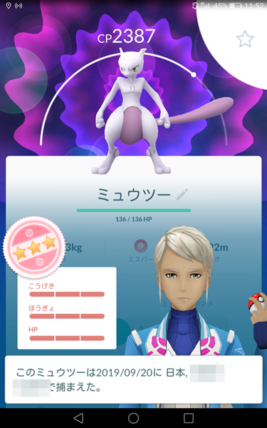 ≪2019年9月20日≫ 今日は出勤時間がゆったりだったので、その前に梅田へ行ってきました。 目的となる場所は、ポケモンセンターオーサカ! 本当は心斎橋にオープンのポケモンセンターオーサカDXに行きたいところでしたが、大丸心斎橋店がグランドオープンということもあり、間違いなく短時間で任務をこなすことはできないと判断して梅田に向かった次第です。 その“任務”というのは、オーサカDXオープン記念グッズの購入と来店限定のクリアカードを貰うこと。 クリアカードは道頓堀をモチーフにした感じで、馴染みのある場所ということでどうしても欲しかったんです。 その後は、開始中のミュウツーレイドに向かいます。 梅田の主要な場所であれば人数不足ということはほぼないので、落ち着いて挑むことができるのはありがたい。 そして、そのミュウツーレイドで歓喜が…! CP2387。 わかる人にはわかる、個体値100%でした。 伝説レイドで個体値100%が出たのは初めてで、それがまさか限定技のミュウツーとは驚きです。 とても気分が良くなったので、ミュウツーレイドは1戦に止めて、職場への差し入れ探しを開始。 大丸梅田店に期間限定で出店している『OYATUYA.ISU』のマフィンに決めました。 | ||||