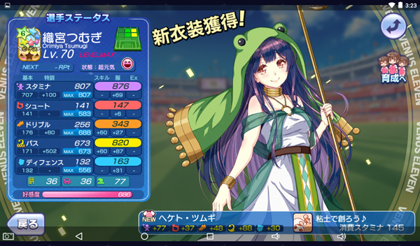 ≪2019年9月23日≫ 美少女育成サッカーゲームアプリ『ビーナスイレブンびびっど!』で9月24日から始まるイベント「Egyptian Mystery」の招集メンバーです。 GK 舞姫ゆらら(9104試合0点) DF ハッカ2号(7480試合15点) 嫋八女ふみ(16714試合375点) エヴァ(20550試合498点) ヴァレリー(20057試合674点) MF ビャクシニ(11296試合76点) 鳴海りな(9014試合4点) プラチナ(11896試合368点) 織宮つむぎ(186試合0点) ※特効 口口ロロロ(3759試合11点) FW 速水つばさ(11836試合16662点) 控え ロトン(10887試合14点) ※ボーナス 飯綱みれい(9013試合81点) 小松菜れな(13800試合2051点) いつものメンバーに特効の織宮つむぎ選手を加えた陣形で臨みます。 スタッフスカウトで特効を追加できれば最高ですが、10連だけでは厳しいでしょうね(汗) | ||