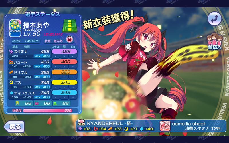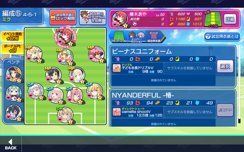 ≪2019年11月12日≫ 美少女育成サッカーゲームアプリ『ビーナスイレブンびびっど!』で11月13日から始まるイベント「Re BEGINNING」の招集メンバーです。 GK 舞姫ゆらら(9606試合0点) DF 黛エリカ(0試合0点) ※ボーナス 嫋八女ふみ(17548試合376点) エヴァ(21606試合498点) ヴァレリー(21113試合675点) MF ビャクシニ(11830試合76点) 鳴海りな(9598試合33点) プラチナ(12398試合368点) 谷城かなみ(8364試合34点) 口口ロロロ(4075試合12点) FW 椿木あや(0試合0点) ※特効 控え ロトン(11535試合15点) ※ボーナス メカひな(641試合2点) ※特効 速水つばさ(12646試合18227点) 周年イベントは“年一サッカー”(笑) ロトン選手以外の特効とボーナス選手は今まであまり出場機会がありませんでしたから急遽仕上げました。 | ||