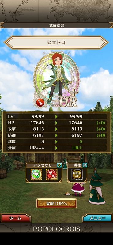 『ポポロクロイス物語 ナルシアの涙と妖精の笛』では6回目となる夢幻ダンジョンイベントが終了しました。 夢幻ダンジョンは主に限界突破をするためのアイテム「勇者の証」をとことん周回して集めていくイベントになるわけですが、6回目にして初めて完走して300個の証を確保できました。 まぁ…しんどかった(笑) でも、どうしても限界突破をして強化したいキャラがいたので、終わった今は満足感です。 そして限界突破を終わらせたURピエトロに早速、最近実装された第4覚醒を実行! ステータスに変化はないものの船団戦で味方全員にバフがかかるというのが魅力的。 |
