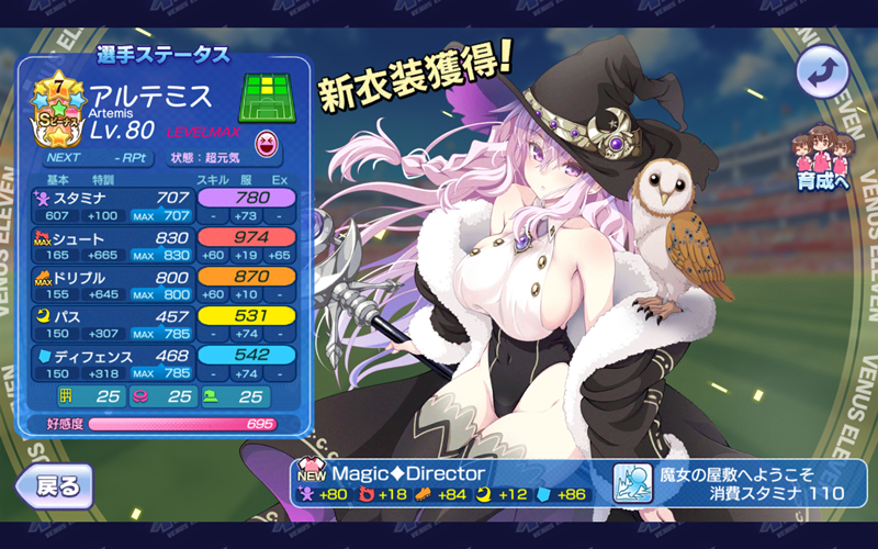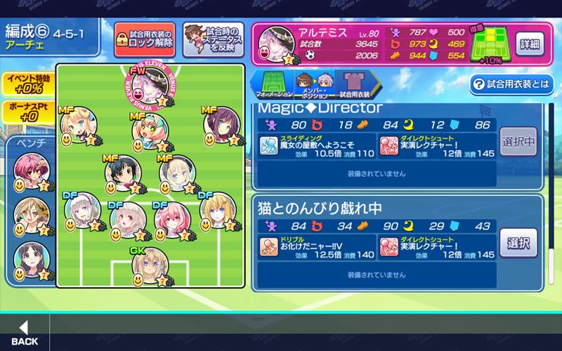 美少女育成サッカーゲームアプリ『ビーナスイレブンびびっど!』で3月25日から始まるイベント「Mysterious Scent」の招集メンバーです。 GK 舞姫ゆらら(10418試合0点) DF ハッカ2号(8551試合15点) 嫋八女ふみ(20264試合452点) エヴァ(24540試合500点) ヴァレリー(24045試合676点) MF ビャクシニ(13519試合76点) 鳴海りな(12172試合149点) プラチナ(13912試合368点) 花道おうか(382試合0点) ※パネルボーナス 口口ロロロ(5211試合12点) FW アルテミス(3645試合2006点) ※特効 控え 飯綱みれい(13506試合101点) 小松菜れな(17540試合2478点) 谷城かなみ(9657試合36点) パネルボーナスの選手はいるものの特攻がアルテミス選手のみ。 ミラの泉で1000ビーナスハートが貰えるか貰えないか微妙なラインですね。。。 | ||
