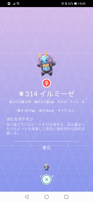 今回の頑張るポイントは、バルビートが出現していた日本には居なかったイルミーゼが期間限定で出現かつ色違いも実装ということで、図鑑を華やかにさせたいと。