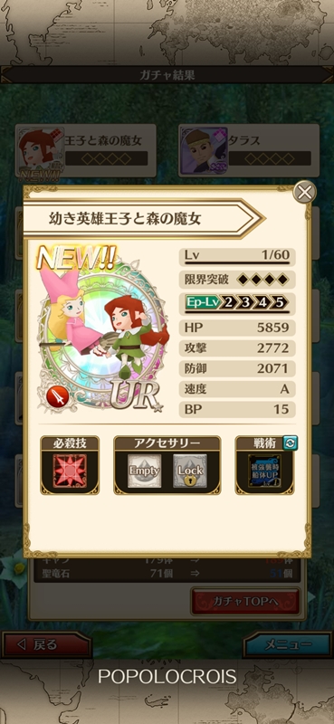 1996年7月12日に『ポポロクロイス物語』が発売されて24周年を迎えました。 それを記念して『ポポロクロイス物語 ナルシアの涙と妖精の笛』ではログインキャンペーンが開催され、限定キャラとしてチビピエナルも実装されました。 ナル笛においては、チビピエトロとチビナルシアはボイスがないので個人的には必須なキャラクターではないのですが、今回ばかりは別なのです。 新戦術の“堅牢の風”が今後の船団戦でキーになるかもとの評判を聞いて、点数ではなかなか船団戦に貢献できていない分、補助としてだけでも貢献したいという思いで確保に動きました。 幸いにも大火傷はすることなくお迎えすることができました! 証を使って限界突破もさせて、実戦投入も近々できそうです。 |
