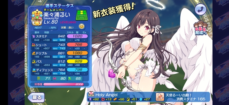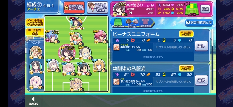 美少女育成サッカーゲームアプリ『ビーナスイレブンびびっど!』で9月24日から始まるイベント「最高の彼女、お仕立てします?」の招集メンバーです。 GK 舞姫ゆらら(11514試合0点) DF 鳴海りな(15610試合317点) 嫋八女ふみ(23427試合512点) エヴァ(28234試合500点) ヴァレリー(27739試合676点) MF ビャクシニ(15694試合76点) 楽々浦るい(4896試合785点) ※特効 プラチナ(15621試合368点) 谷城かなみ(11655試合36点) 花村りお(2955試合1937点) ※特効&パネル FW 速水つばさ(16586試合25643点) 控え リディアーヌ(1238試合355点) 飯綱みれい(19998試合104点) 小松菜れな(21506試合3778点) 『彼女、お借りします』とのコラボイベントですが、オリジナルの選手とは縁がなかったようです。 どちらかと言うとイベスカよりもモーションスカウトの方に重きを置いたので、るい選手を獲得できたのがラッキーでした。 | ||