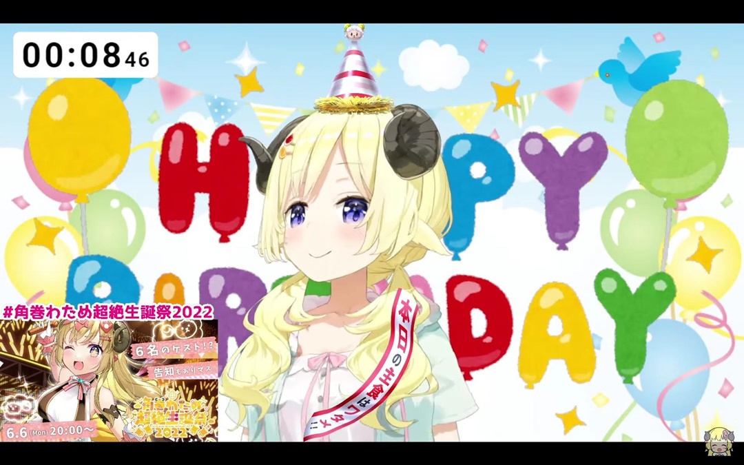 | 参照:【誕生日カウントダウン】6歳の誕生日をみんなと一緒に迎えたい!【角巻わため/ホロライブ4期生】 |