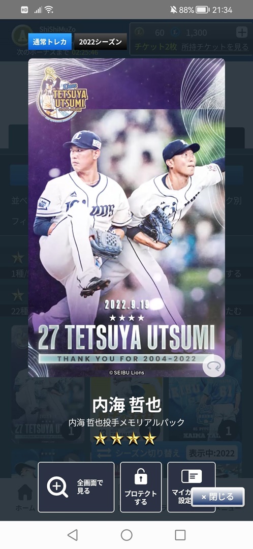 今月のパックで1つ選ぶとすれば、やはり今季限りで現役引退をした内海哲也投手のメモリアルパックとなりますかねぇ。
