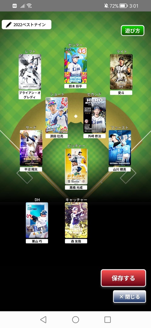 ライオンズファンには嫌なニュースが最近あったばかりですが(汗)、このタイミングで『Lコレ』のマイチーム機能を使って今年の個人的なベストナインを語っていきたいと思います。