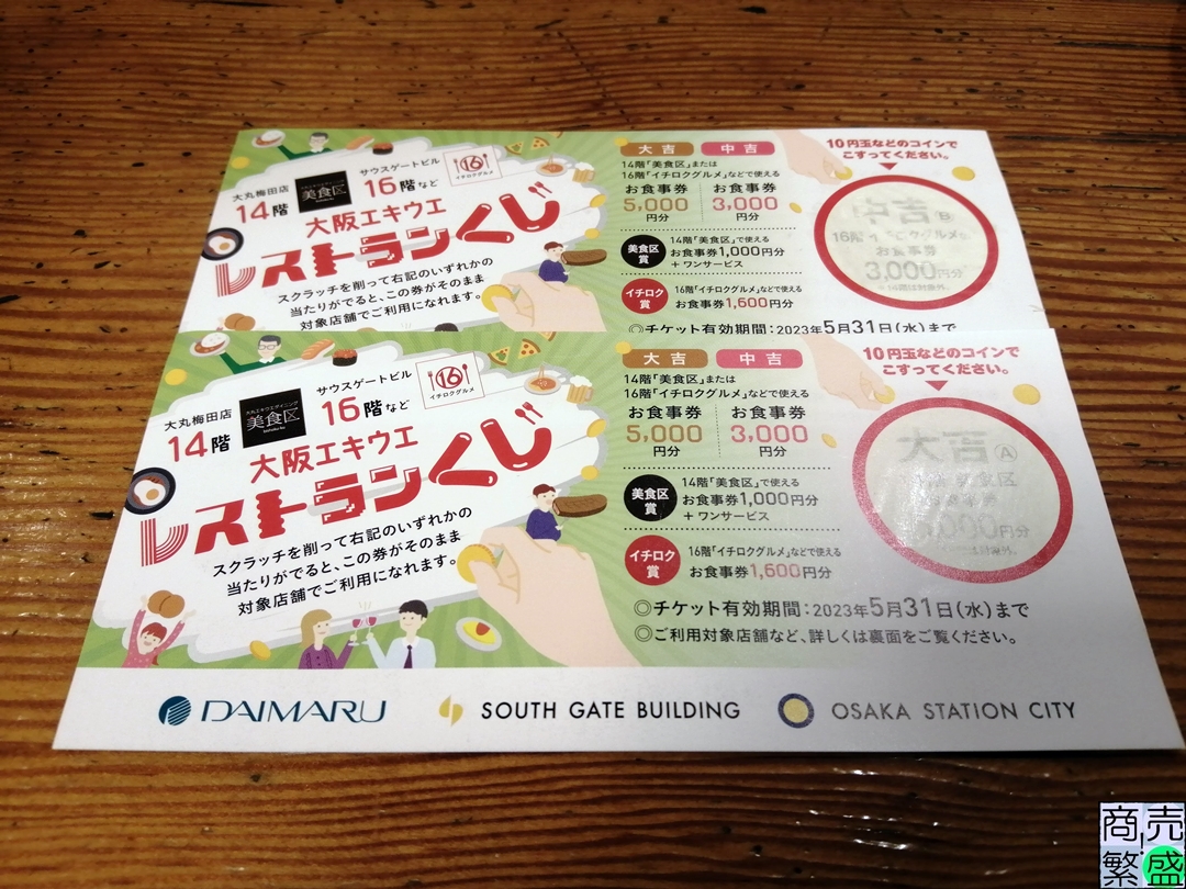 「大阪エキウエレストランくじ」。
