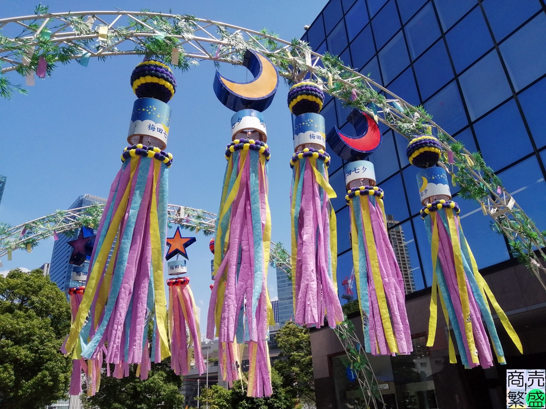 新梅田シティの入口部分と滝見小路に装飾が施されているのですが、七夕ってもう終わったんじゃないのと思われた方もいるはず。