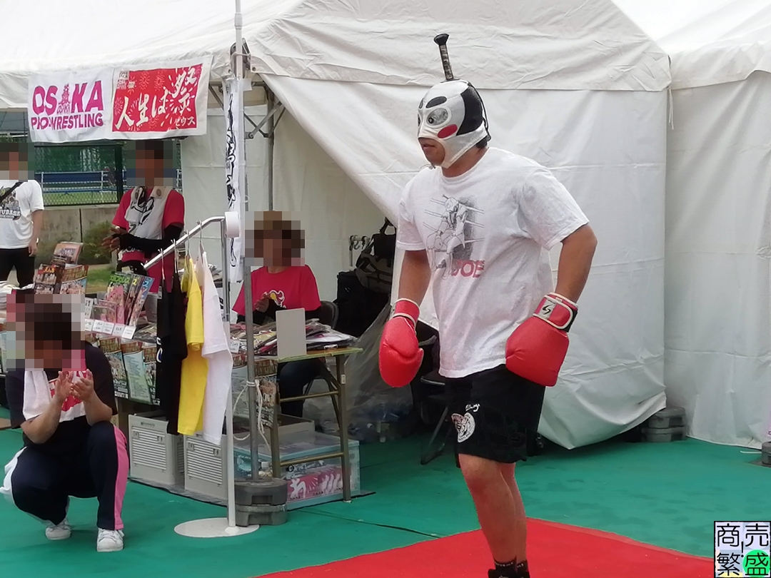 屋外でのプロレスは選手たちもウロウロしていたりするので、普段からファンとの距離は近い大阪プロレスではありますが更にそれを実感することもでき、大阪プロレスを知らない人や初めてプロレスを見る人たちも気軽に写真撮影やサインをしていただくことができます。