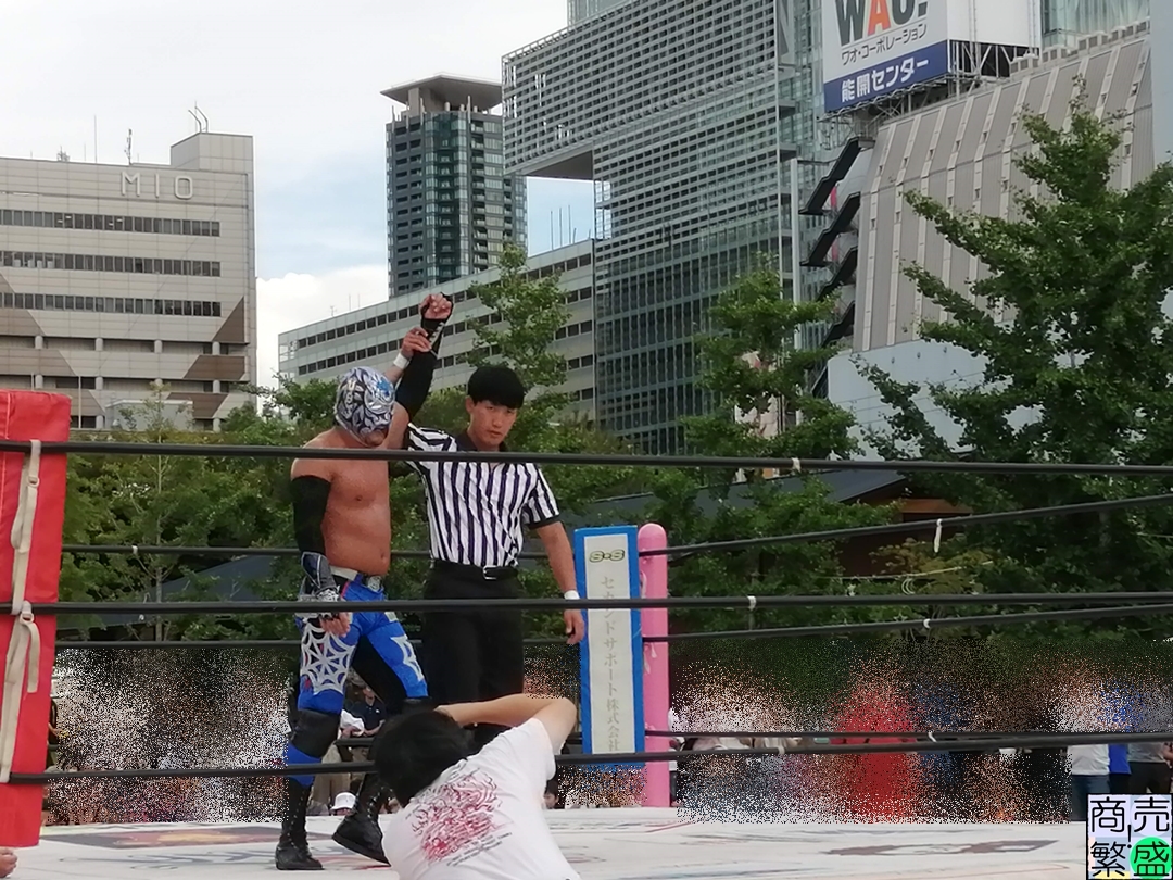 天王寺公園内に整備された“てんしば”で行われた大阪プロレスの無料興行を時間の都合で入場式と第1試合のみ観戦してきました。