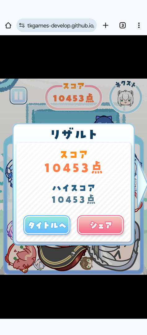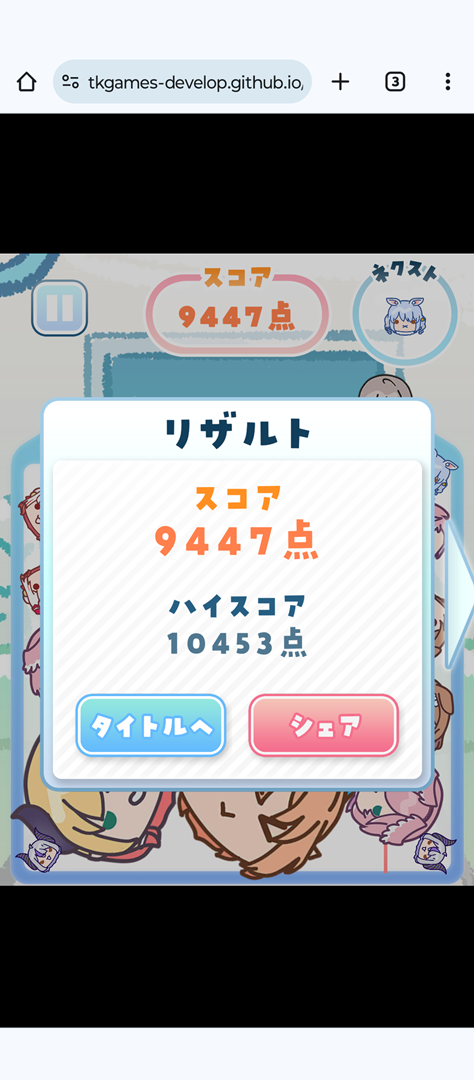 それでも個人的にはすごく親近感がありますし、スイカゲームでは3500点というハードルがあまりにも高くて諦めている中で(汗)、点数計算がそもそも違うもののホロのスイカでは10000点前後を頑張れば取れるので気分が良いです(笑)