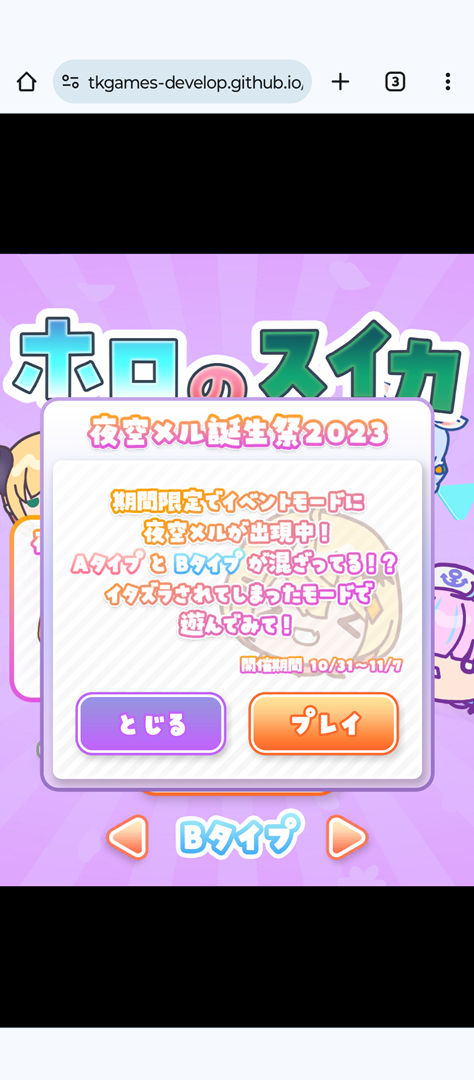 タイムリーな話題を採用したり、初期版には登場していなかったメンバーばかりのBタイプをすぐに実装したりすることで既にホロライブ好きにはかなり浸透しているようですが、新たに始まったのは10月31日に誕生日を迎えた夜空メルさんを祝したAタイプとBタイプの混成モードです。