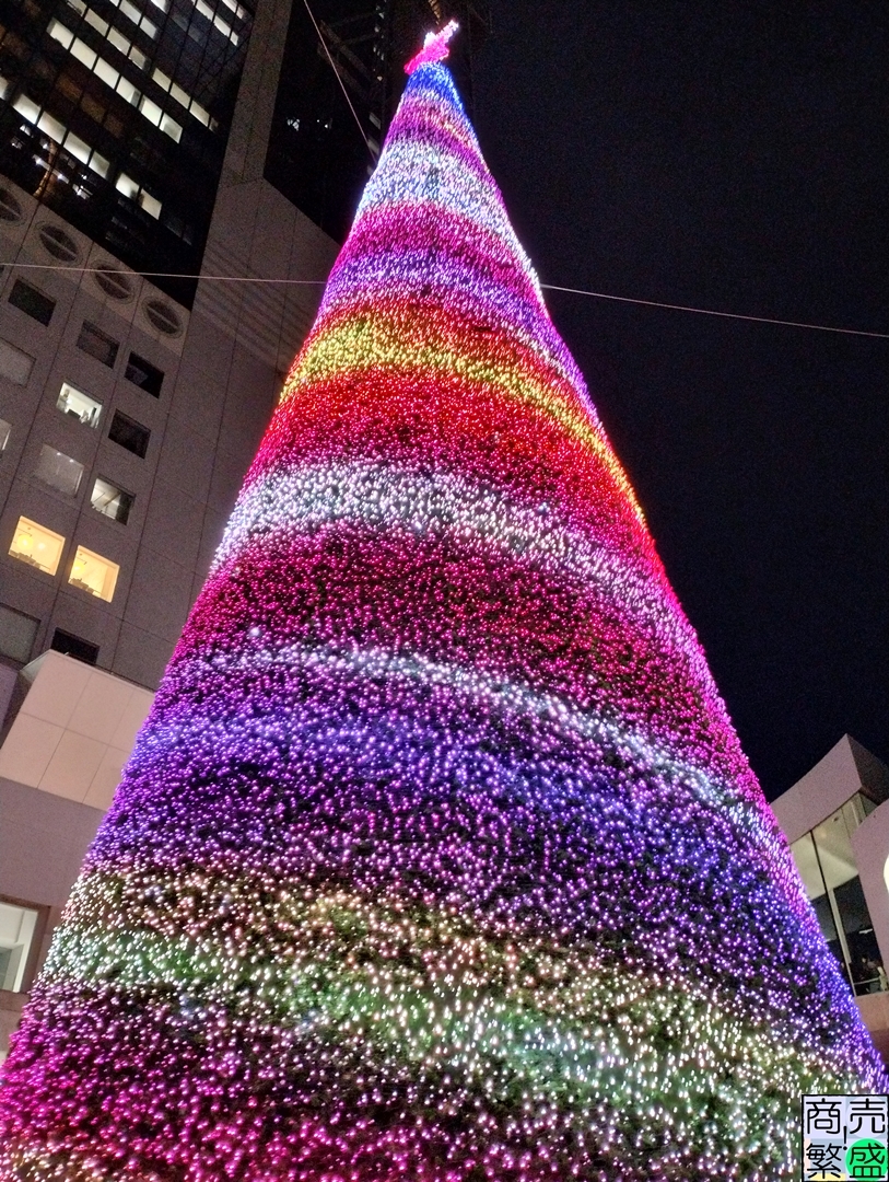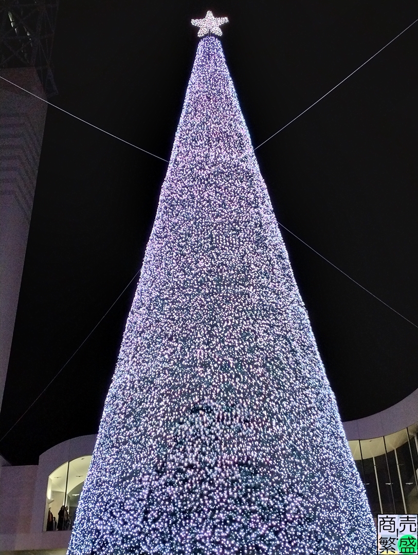 新調されたクリスマスツリーは高さ25メートルに約13万球のLED電球が装飾されているという実に豪華なもの。