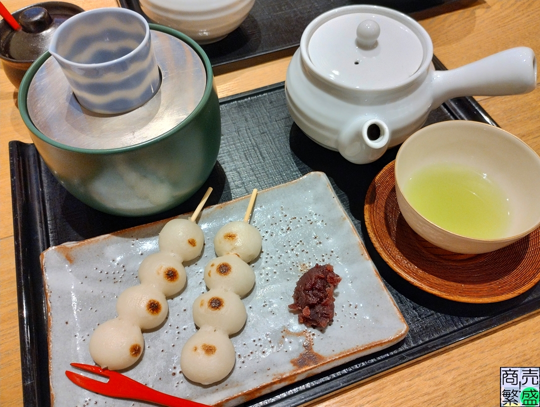 ヒルトンプラザ大阪内にある『京都 つる家 茶房』でみたらし団子と日本茶のセットを初注文。