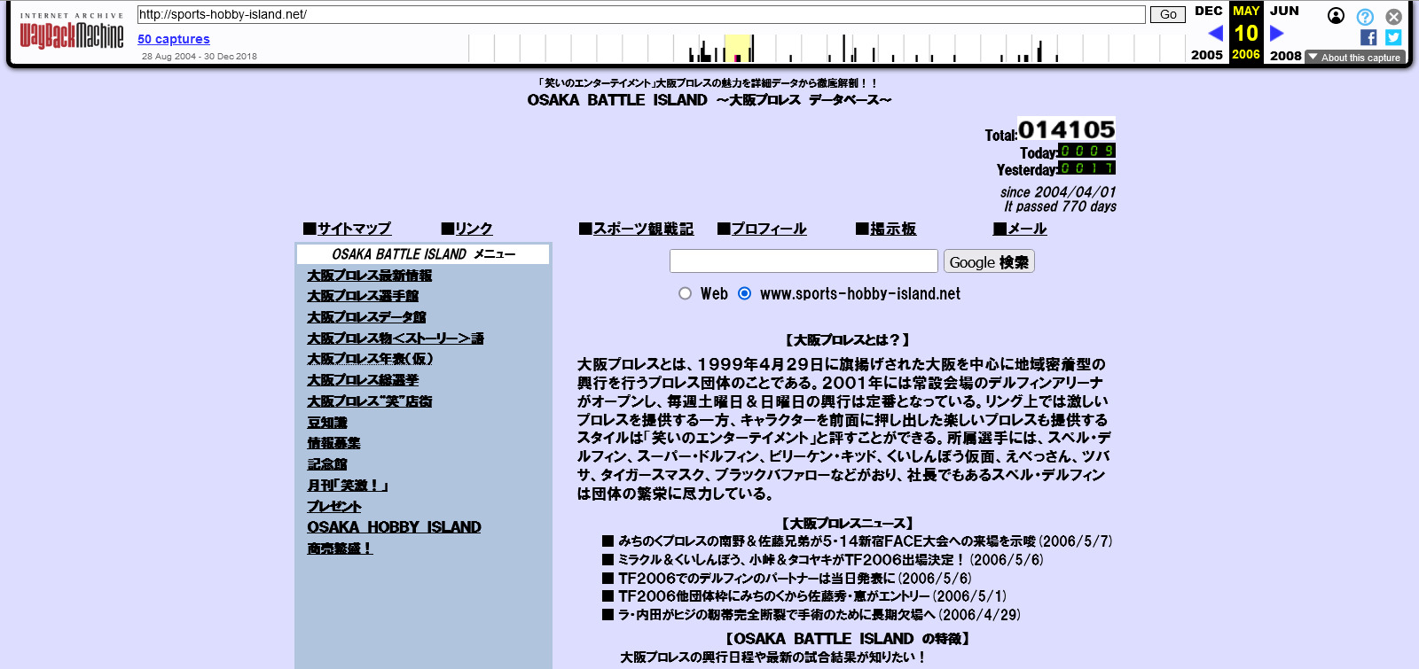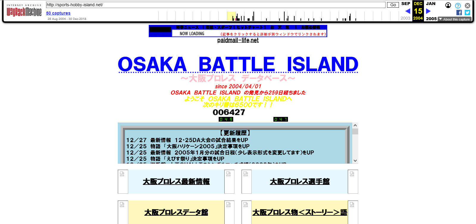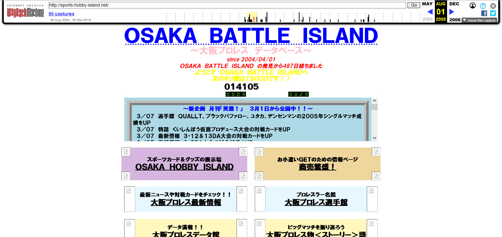 厳密にはその約1ヶ月前から『SPORTS HOBBY ISLAND』という名称で試運転を行っていましたが、OBIは当時に憧れていた大阪プロレスの交流サイトを参考にデータをとことん集めようという意志を掲げて始まったのです。