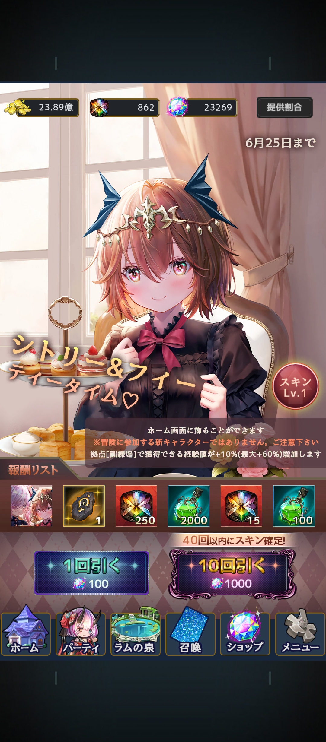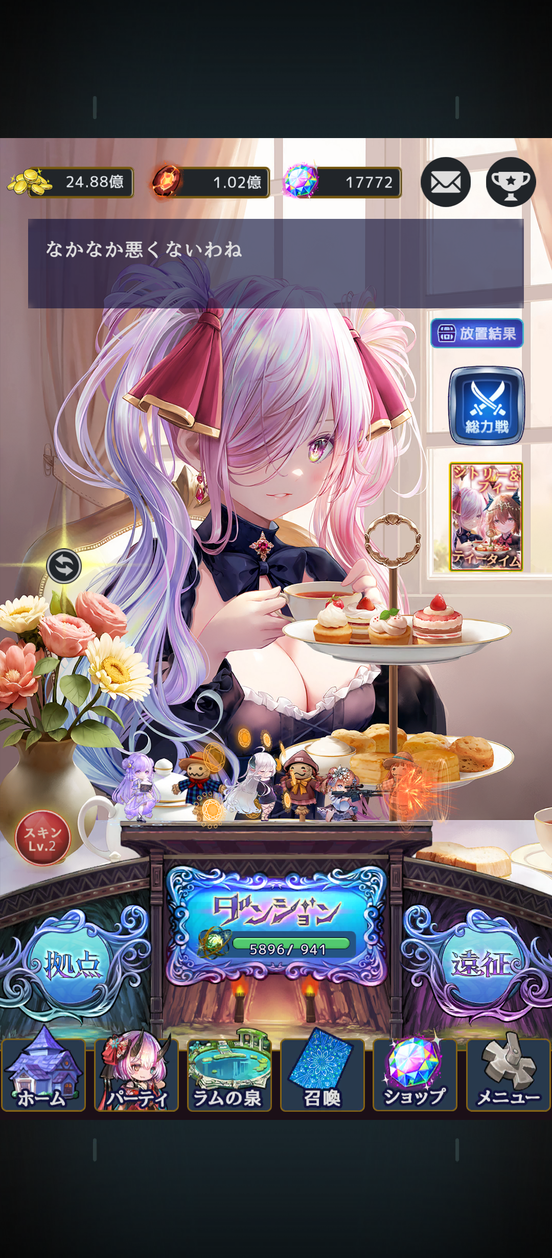 ラム泉の場合、スキンはプレイヤーのホーム画面をただ彩るだけではなく、所持しているだけでバフなど有用な効果が発生するので、可能な限りはすぐにでもMAXレベルにしておく方が恩恵があるわけです。