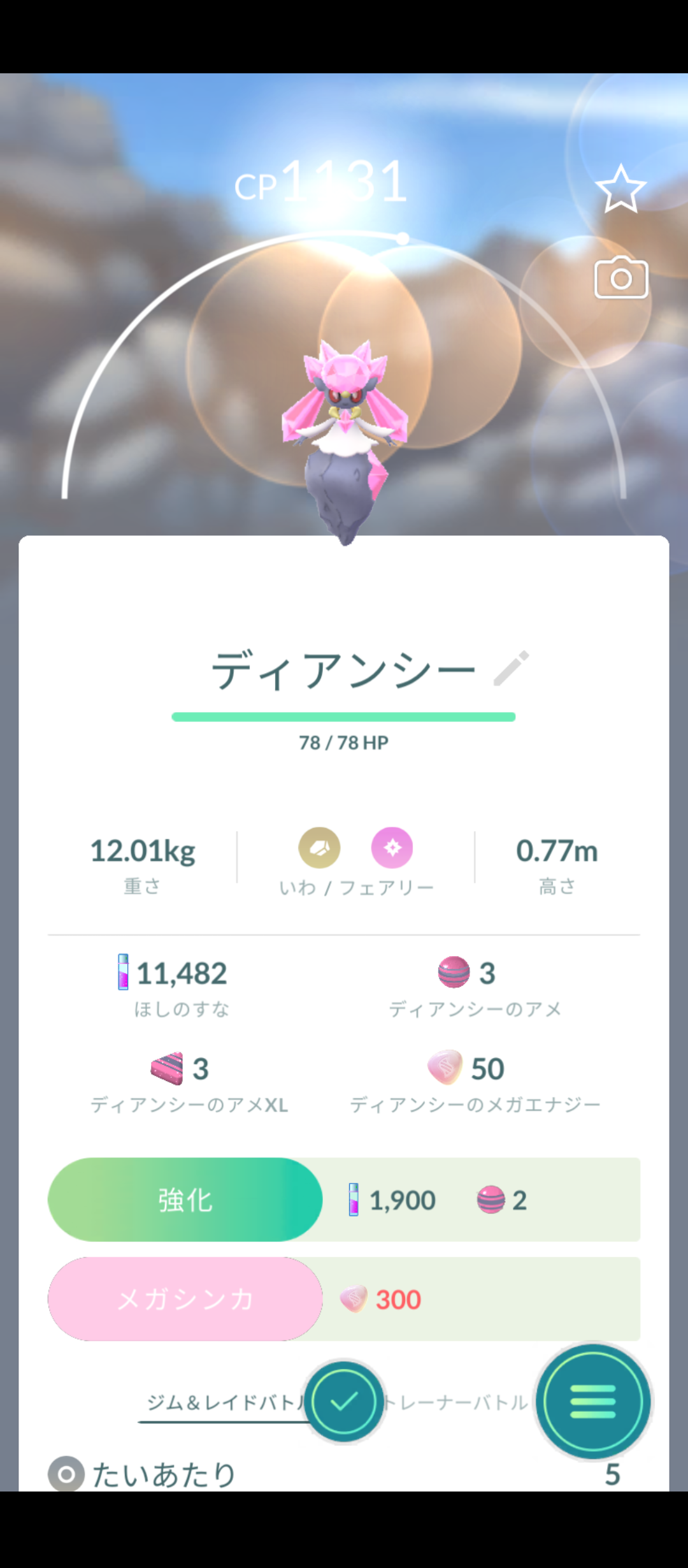 種族値としてはポケゴーで活躍するのが難しい能力ではありますが、幻ポケモンとしては初めてメガシンカできるポケモンということで、できるだけ早く捕獲してメガシンカのレベルも上げておきたいところですね。