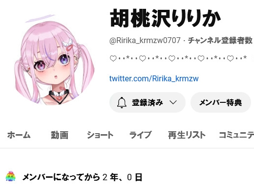 胡桃沢りりかさんのYouTubeメンバーシップ登録が2年となり、バッジがいわゆるレインボーりりかさんになりました!