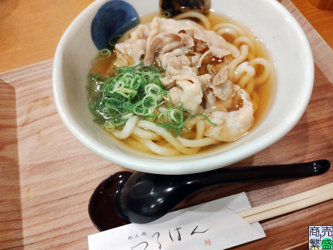 なんばCITY内にある『めん処 つるはん』の盛り豚うどん。