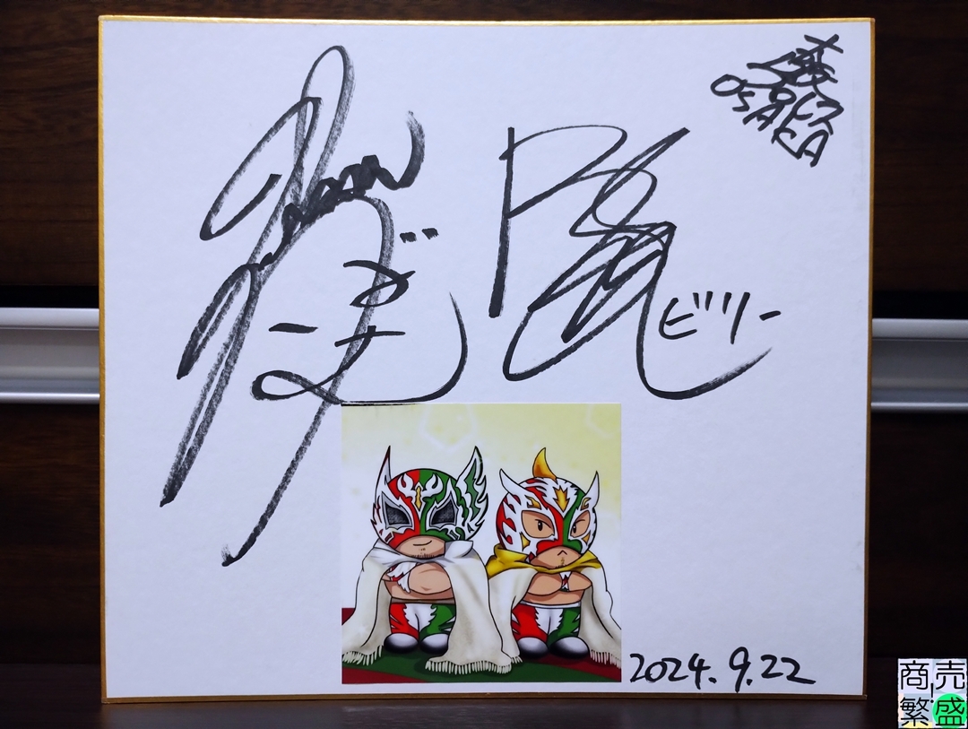この日の戦利品は大阪プロレスタッグ王者“ツバビリー”のサイン色紙。