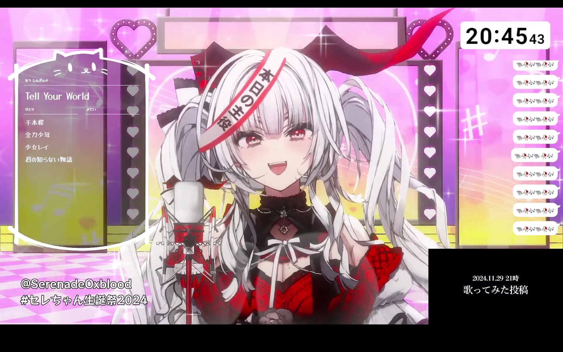 本番となる配信ではハートがたくさんのかわいいステージにセレちゃんが登場。
