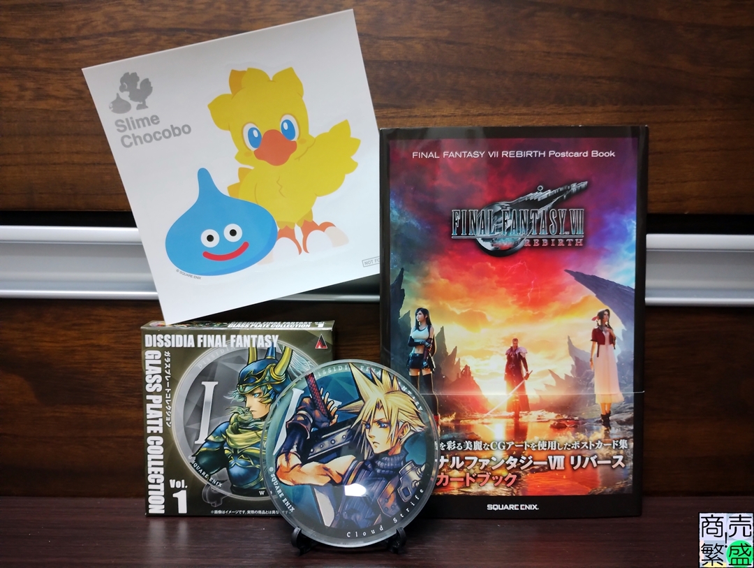 迷いに迷って何回も同じエリアを行き来しながら選んだグッズは、ファイナルファンタジー7リバースのポストカードブックとディシディアファイナルファンタジーのガラスプレートコレクション。