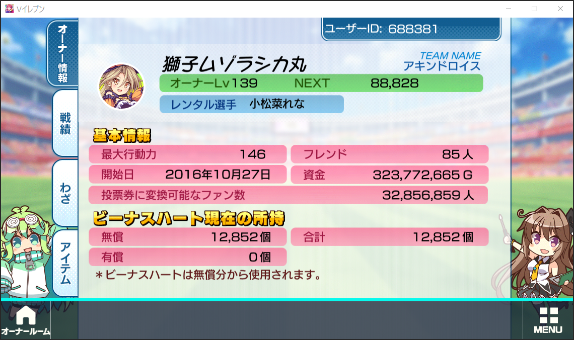 | MF | ヴァレリー | 70884試合 | 2位(→) | 10296点 | 2位(→) |