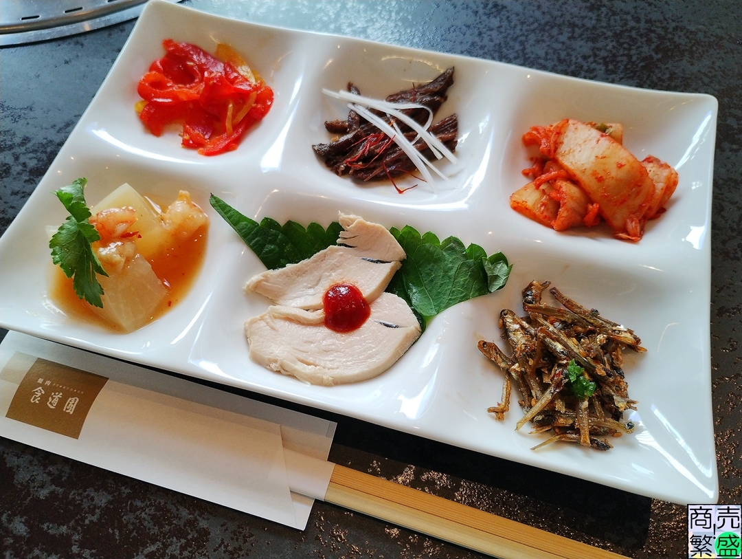 名前の通り、ピビンパとチヂミに加えて6種盛り合わせの前菜が付く欲張りなセットです。