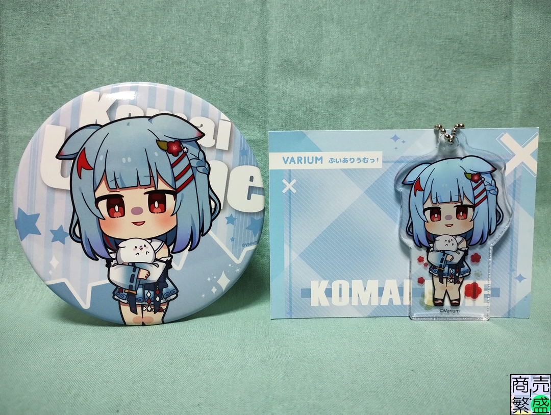 確か同じくVarium所属の白星あわわさんの配信だったと思うのですが、ファンのお宅訪問、いわゆるコレクション自慢でよく見かけたのがこのアクリルキーホルダーと缶バッジでした(他にタペストリーもあったかな)。