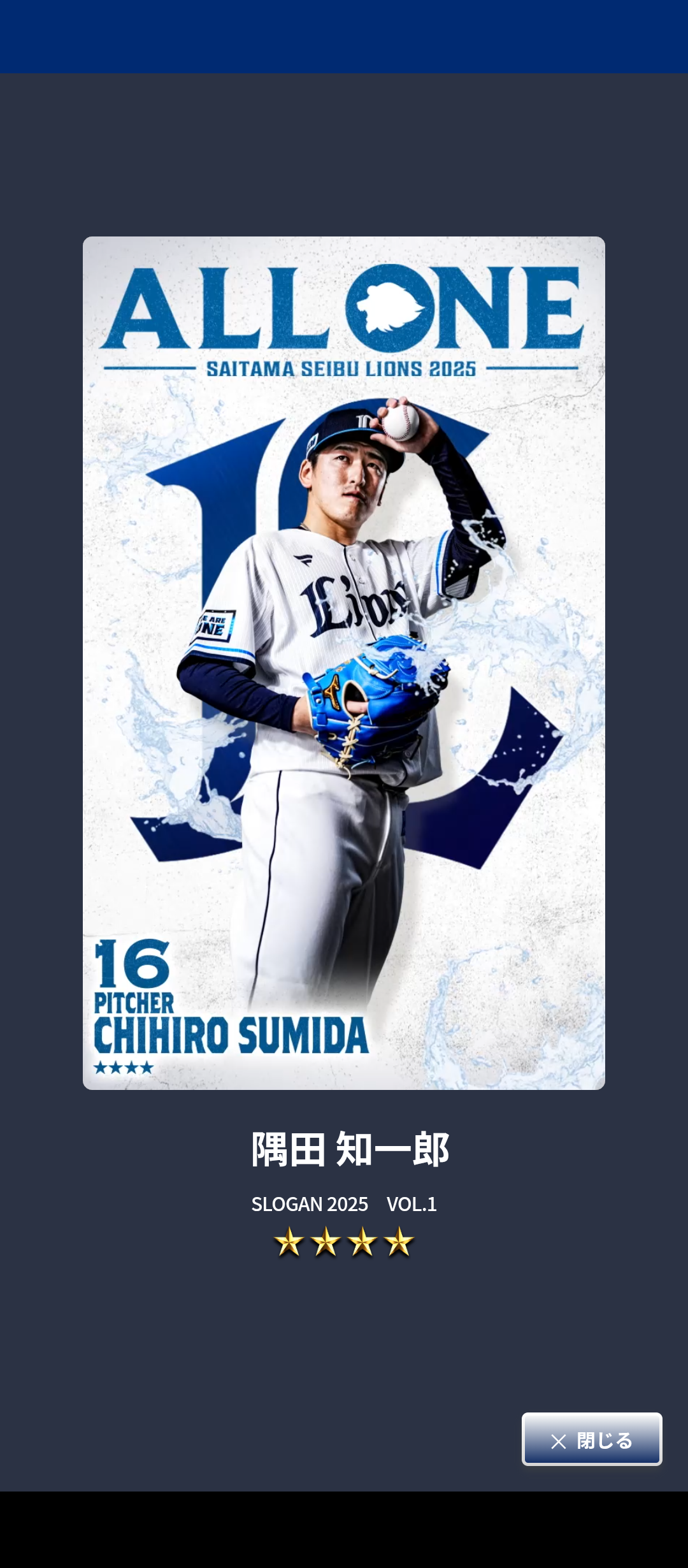 「ALL ONE」の文字の下には隅田知一郎投手。