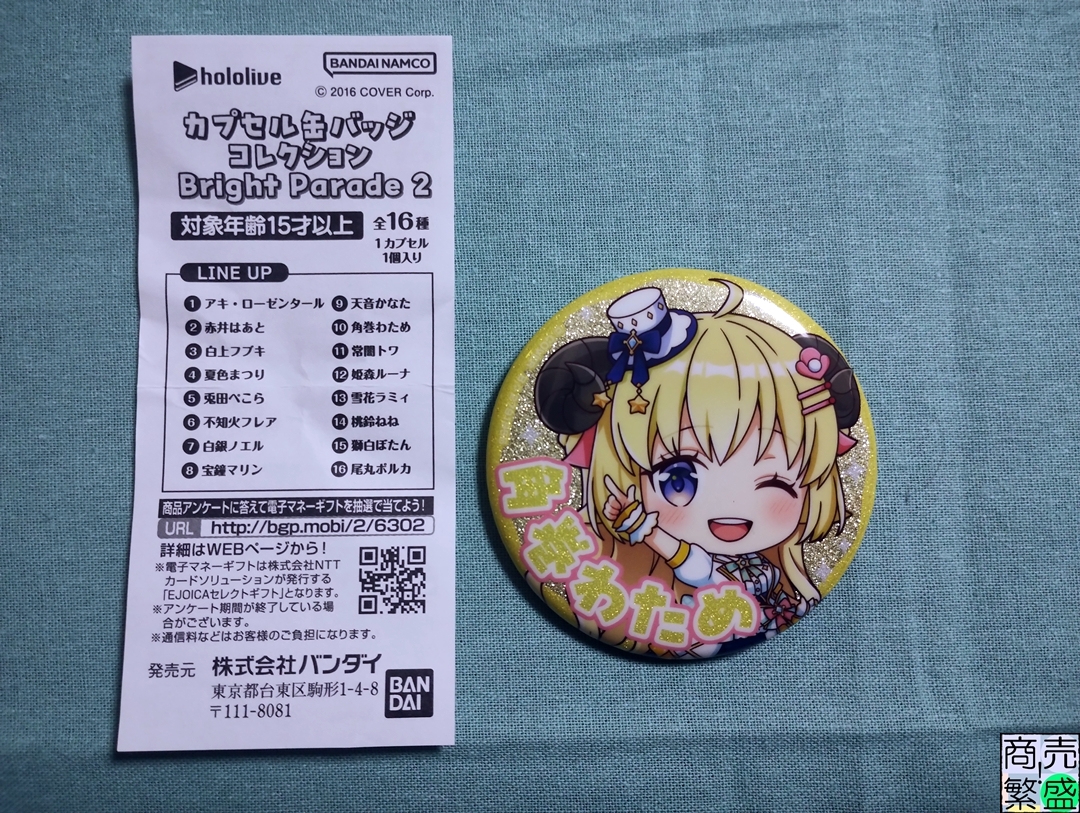 ホロライブのカプセル缶バッジコレクション Bright Parade 2のわためぇを収蔵しました。