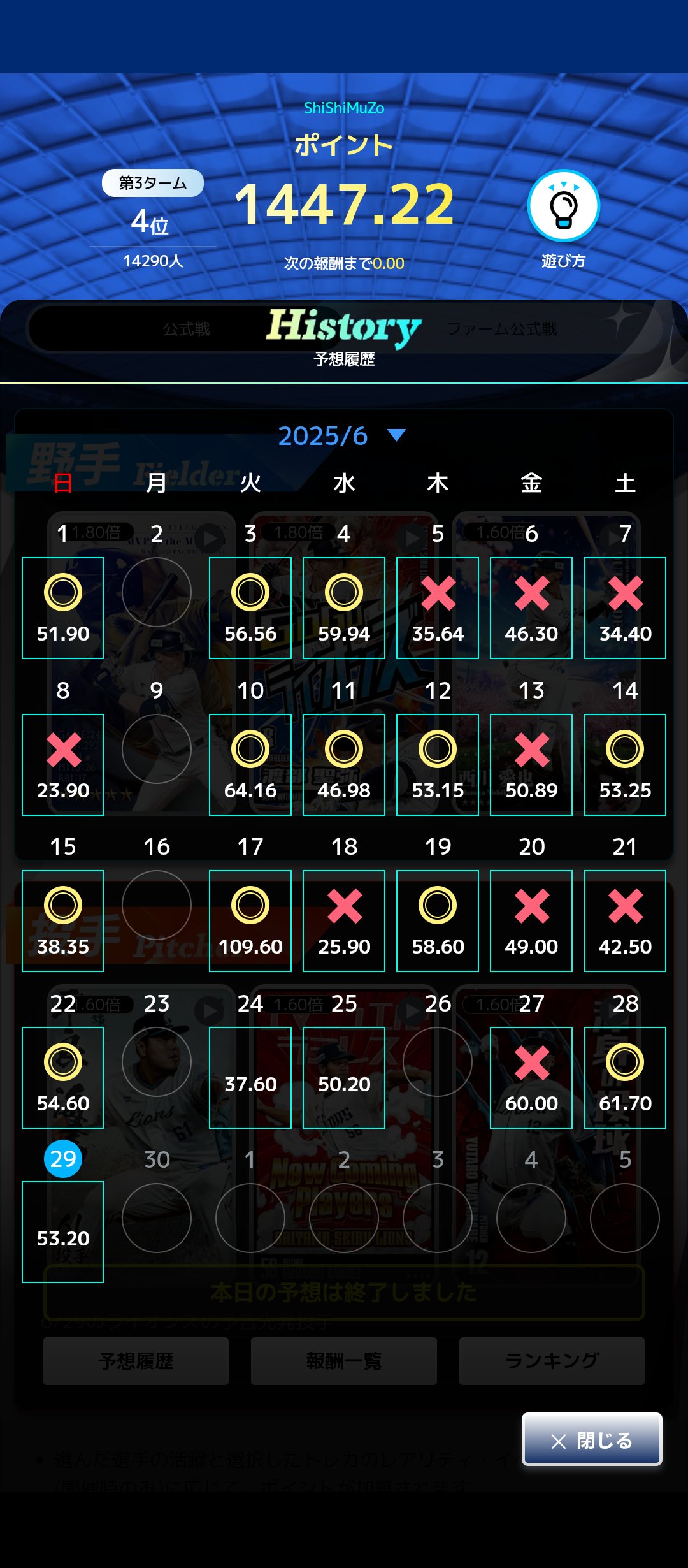 このタームでは変則開催で2軍公式戦も対象の日がありましたが、大外しすることがなかったのは大きかったですね。