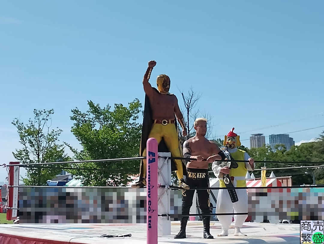 てんしばでの大阪プロレスイベントは恒例となっており、周囲にはいろいろな屋台が建ってお祭りのような雰囲気になる相性の良い会場です。