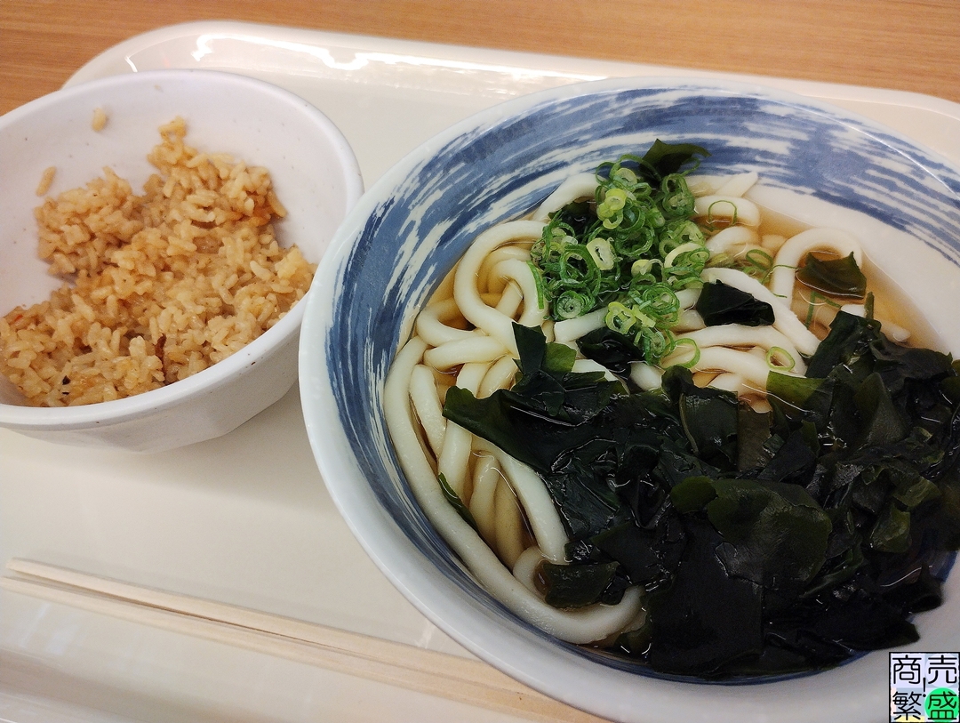 西ゲートのさらに奥にある“好きやねん大阪フードコート”で食べたわかめうどん。