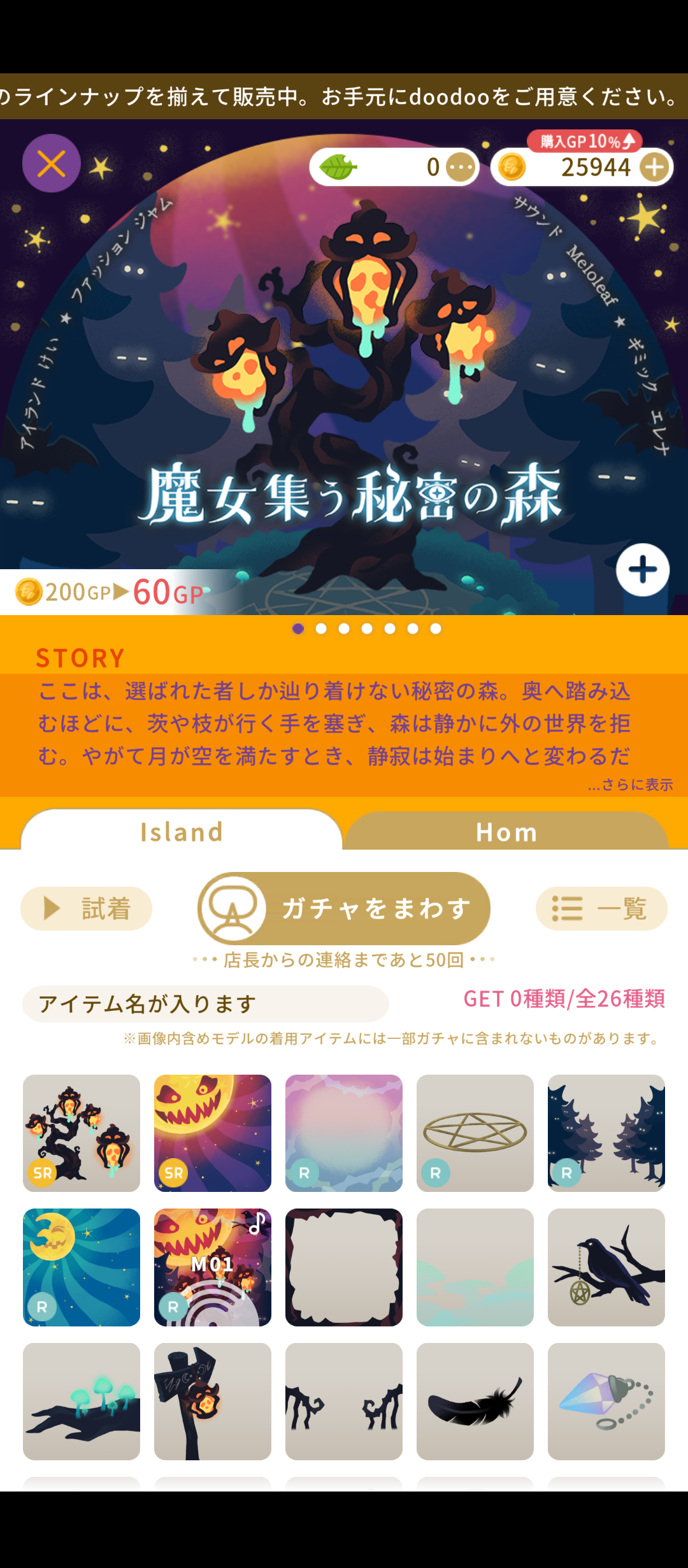 どちらのガチャにもハロウィンにぴったりなアイランドやホムアイテムがラインアップされており、ししむぞもテーマを定めてアイランド作りに試行錯誤。