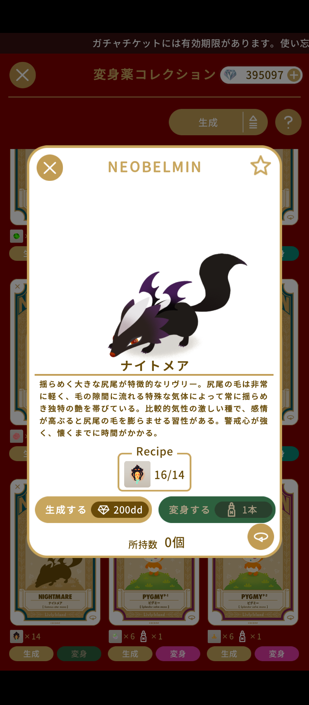 “魔女集う秘密の森”からはナイトメアが、“BOO! Halloween Factory”からはレヴナントが生成できるようになりました。