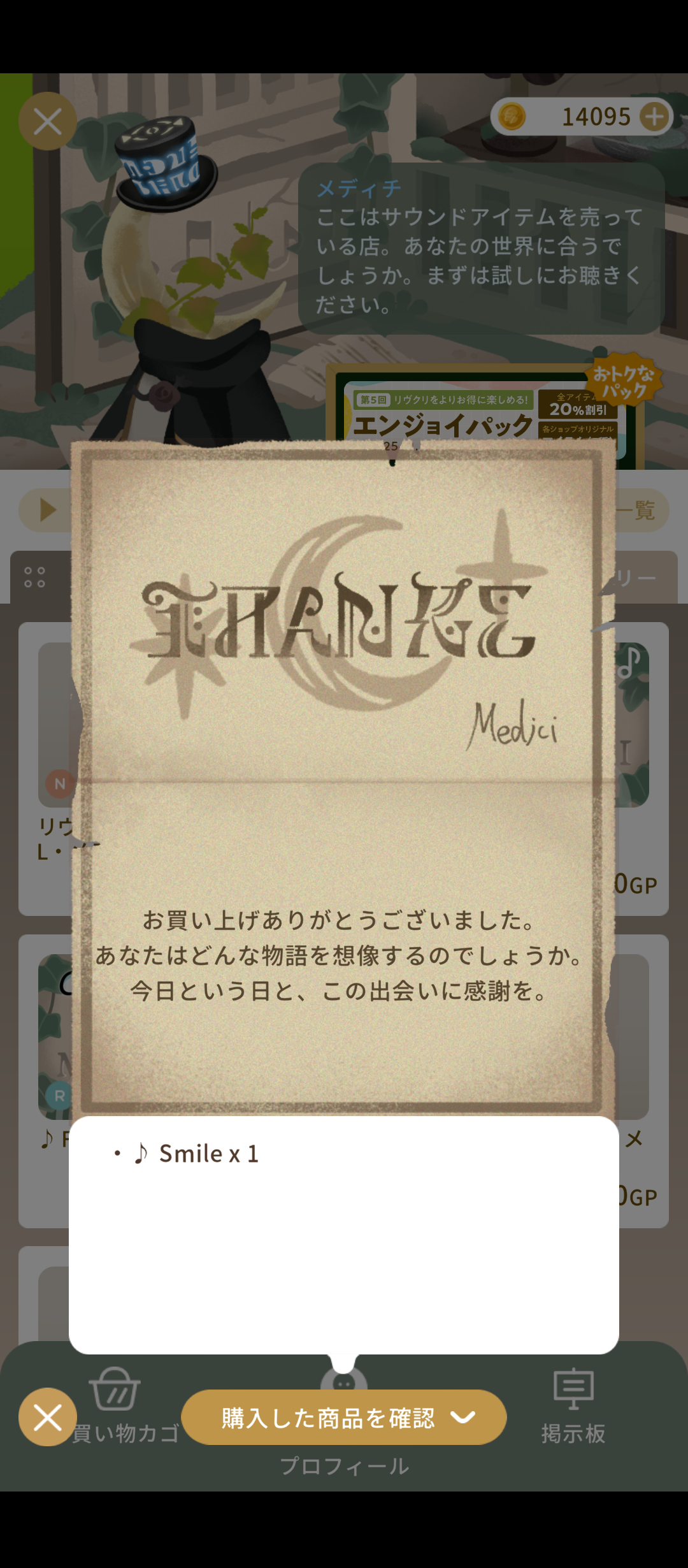 さすがにそれではGPが足りないにもほどがあるので、最も気に入ったメディチさんのサウンドアイテムをいくつか購入しました。
