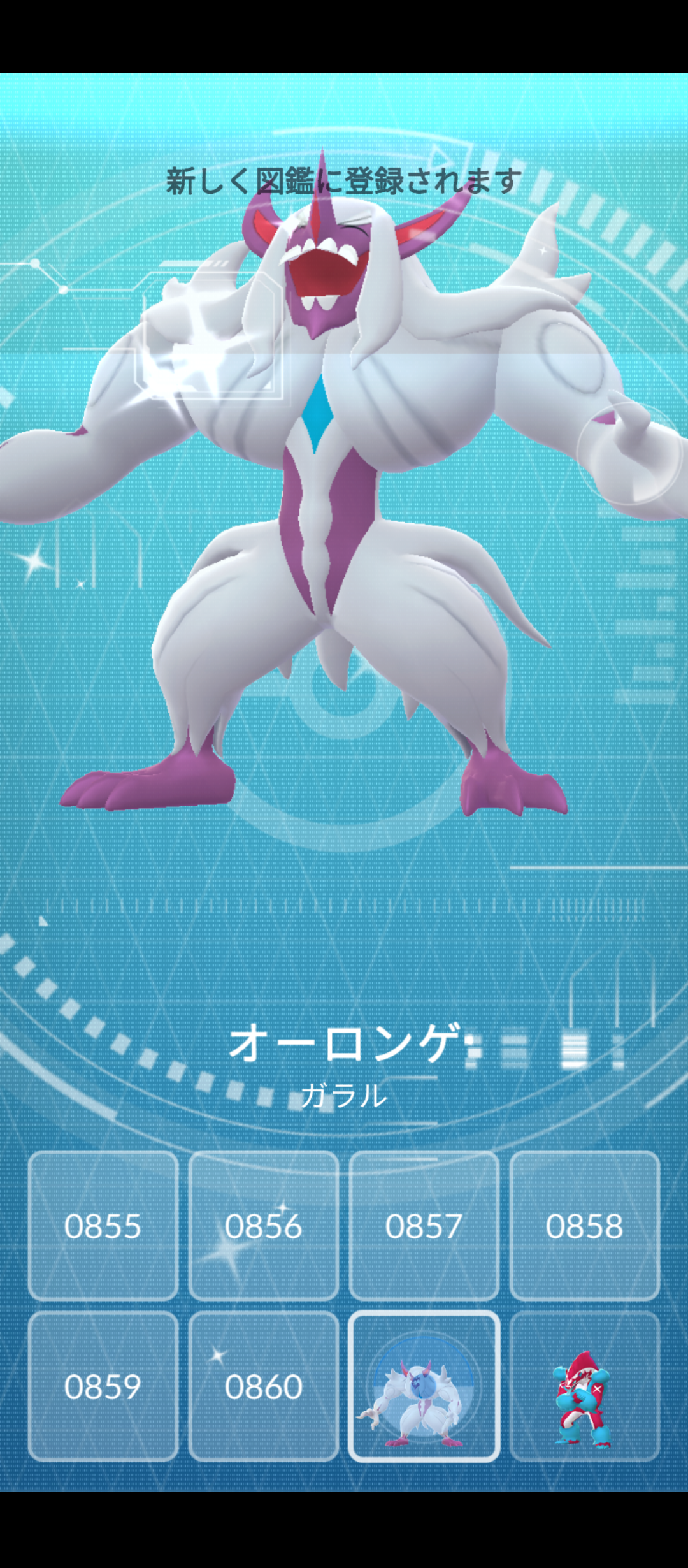 昨年の同じイベントではキョダイマックスストリンダーが実装され、今も電気タイプのアタッカーとして健在ですが、今年はその枠としてキョダイマックスオーロンゲが登場し、通常個体としてのベロバー(→ギモー→オーロンゲ)もフィールドに出現しました。
