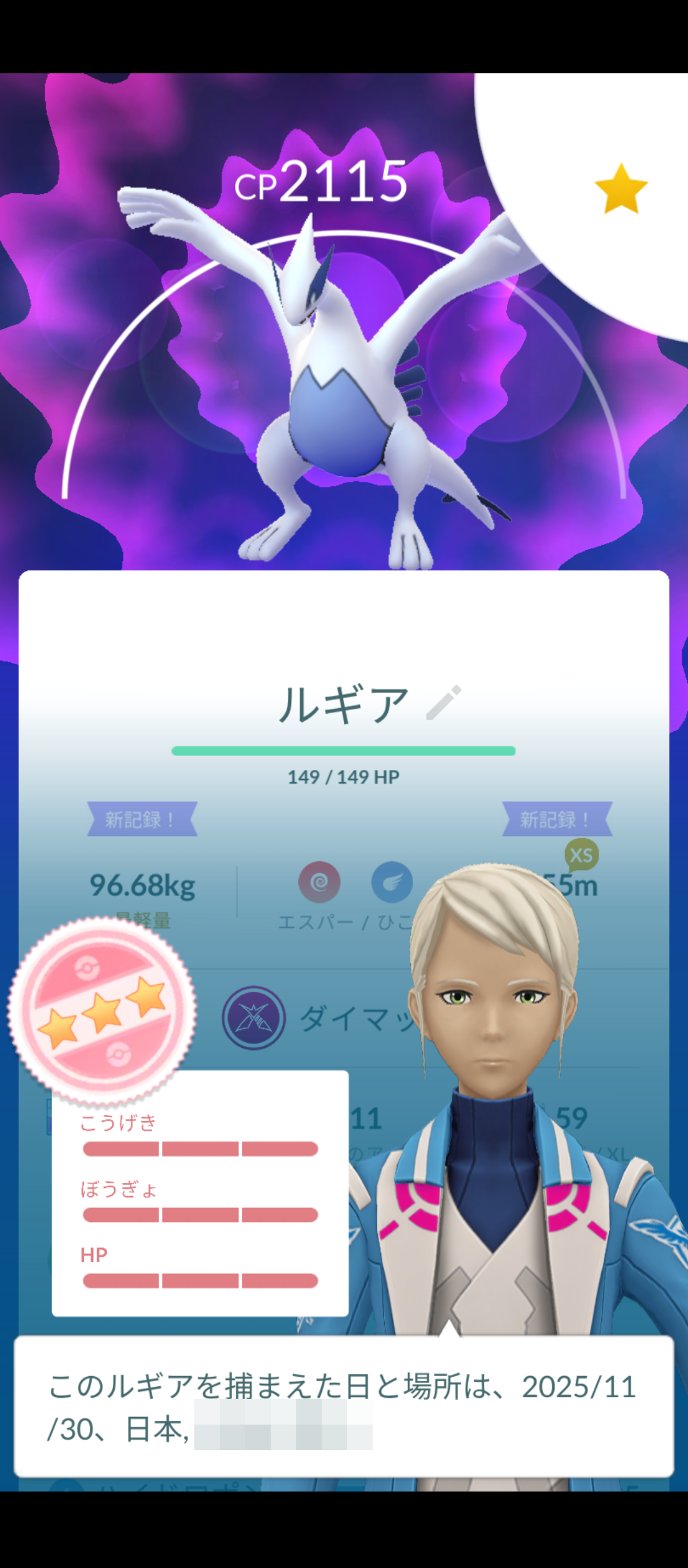 この日は大阪プロレスのイベント試合を見に行くため、初めての場所でのポケ活が功を奏したのか100%のルギアと出会うことができました。