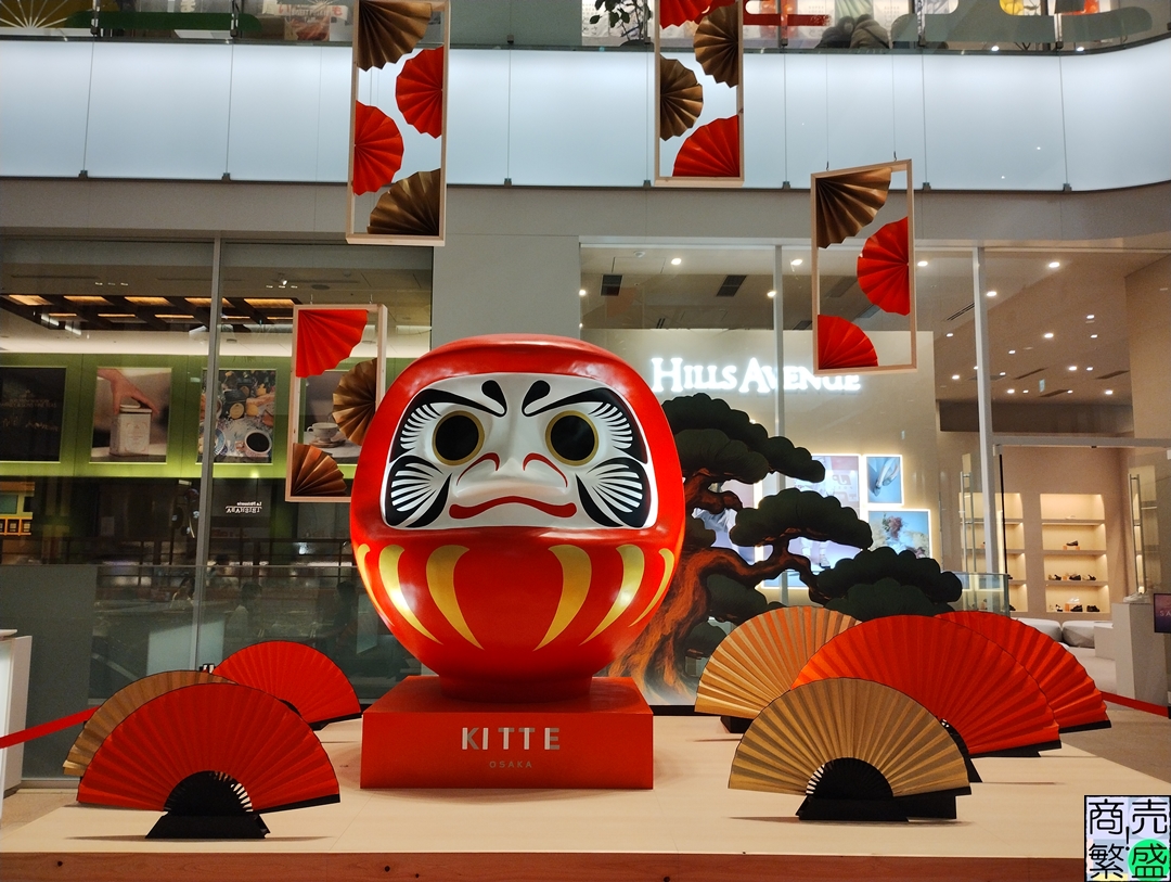 ランチやらショッピングやらで2026年初のKITTE大阪に向かうと、先日まで和風クリスマスツリーが飾られていた場所(参照)に今度は大きなだるまが鎮座しているではないですか。